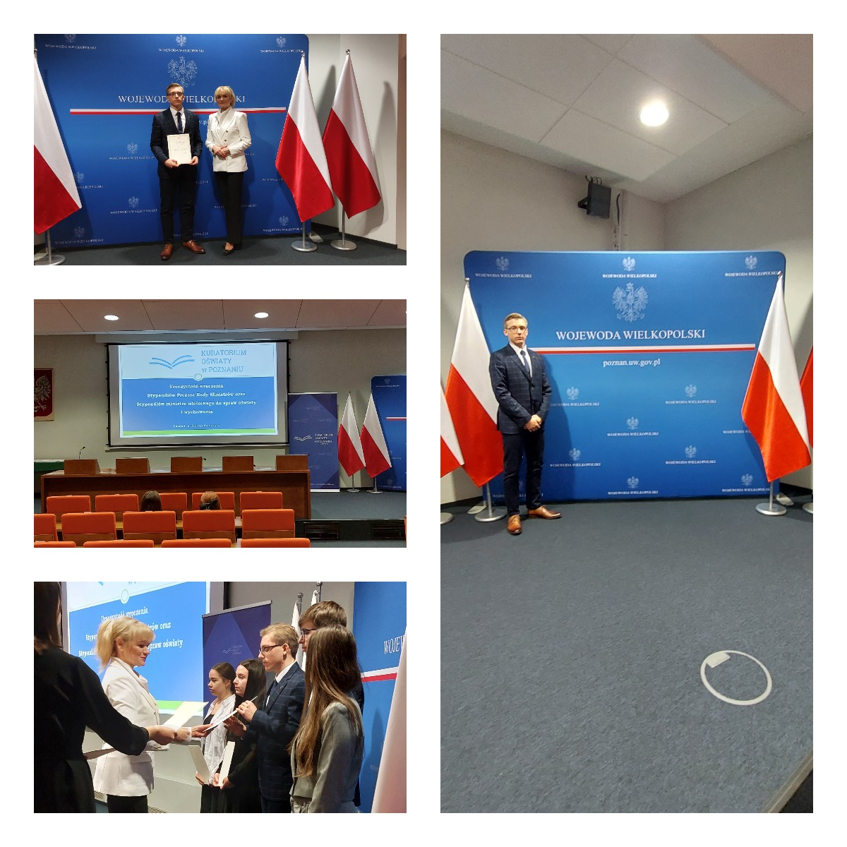 Jesteśmy niezmiernie dumni z wyjątkowego wyróżnienia, jakim został uhonorowany jeden z naszych utalentowanych uczniów, Tomasz Majewski z klasy IV. Tomasz został zaproszony na prestiżową uroczystość wręczenia Stypendiów Prezesa Rady Ministrów, która odbyła się w Sali Sesyjnej Wielkopolskiego Urzędu Wojewódzkiego w Poznaniu.