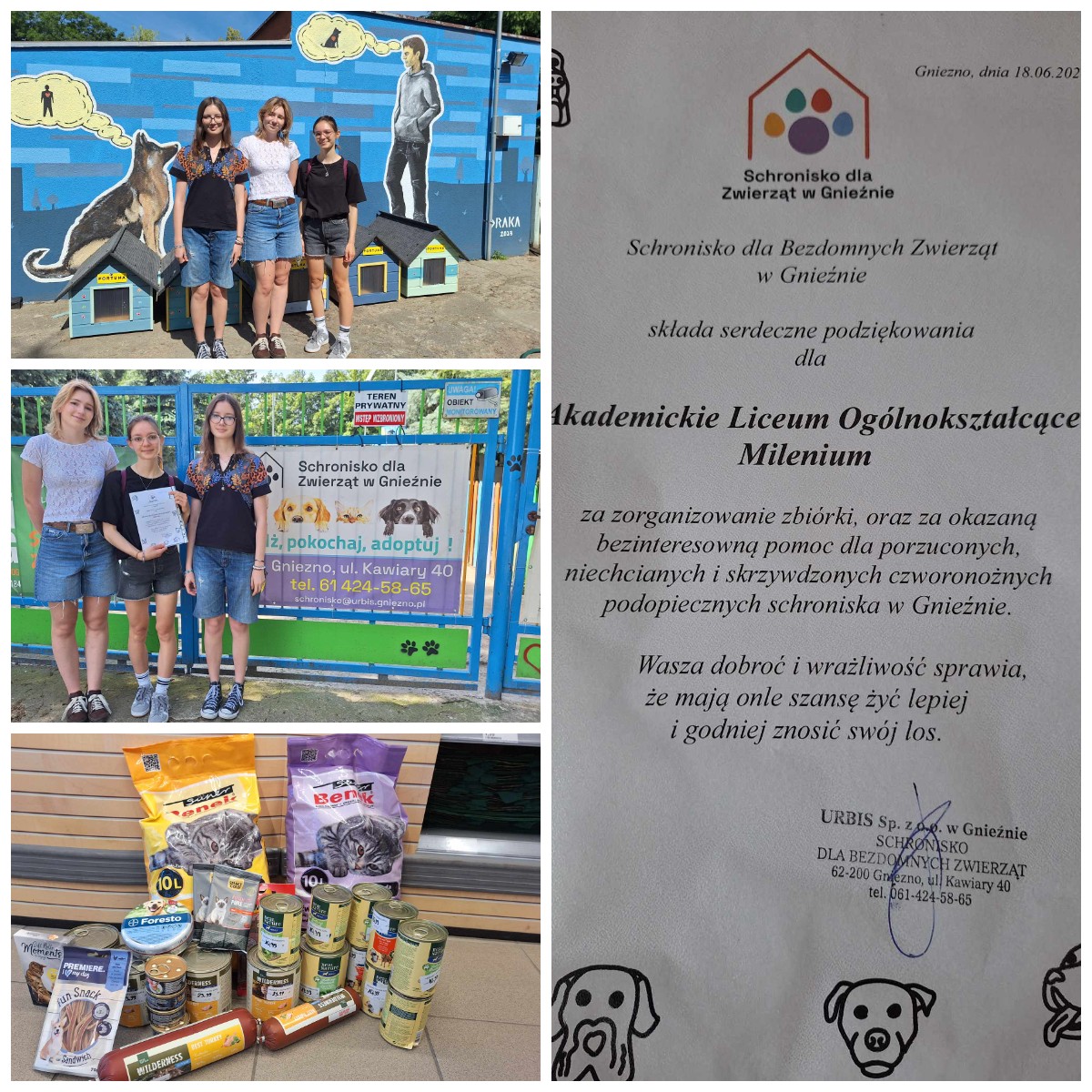 Gazetka szkolna „Sokół Milenium” po raz kolejny wsparła Schronisko dla Zwierząt w Gnieźnie. Redakcja wzorem ubiegłych lat całość kwoty ze sprzedaży gazetki w roku szkolnym 2023/2024 przekazała na pomoc czworonogom.
