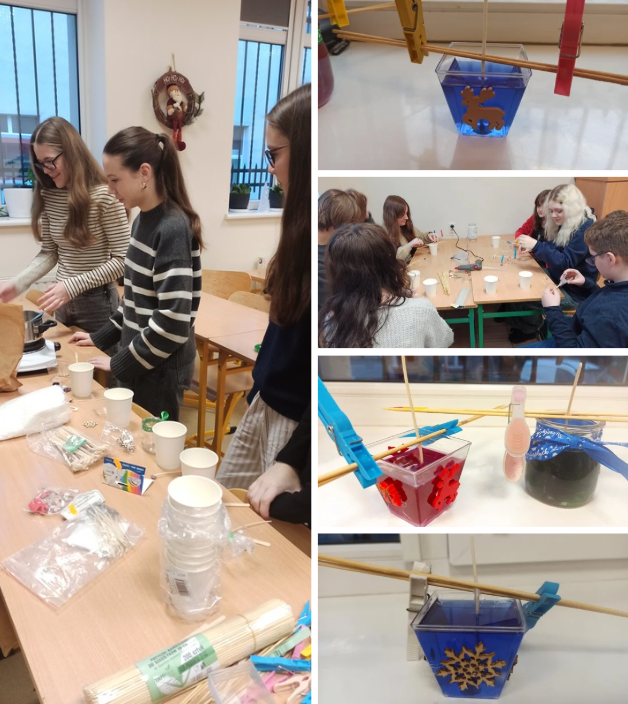 W ramach świątecznych fakultetów z chemii, w okresie poprzedzającym Święta Bożego Narodzenia, uczniowie klasy II A LO wykonywali świece z wosku sojowego o zapachu piernika. Zajęcia łączyły elementy nauki z kreatywną pracą, wprowadzając świąteczną atmosferę.