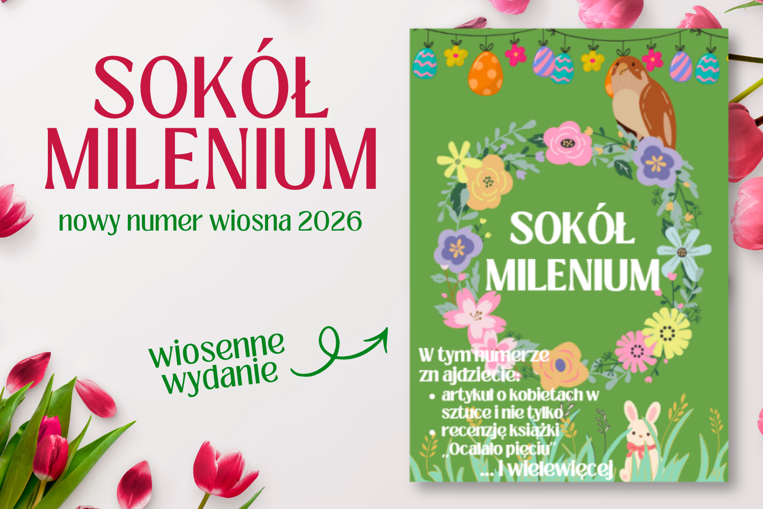 Ukazał się wiosenny numer szkolnej gazetki "Sokół Milenium"! W tym wydaniu znajdziecie artykuł o kobietach w świecie sztuki, wiosenną krzyżówkę, recenzję książki "Ocalało pięciu", recenzję filmu Przetrwać w Nowym Jorku" i wiele więcej!