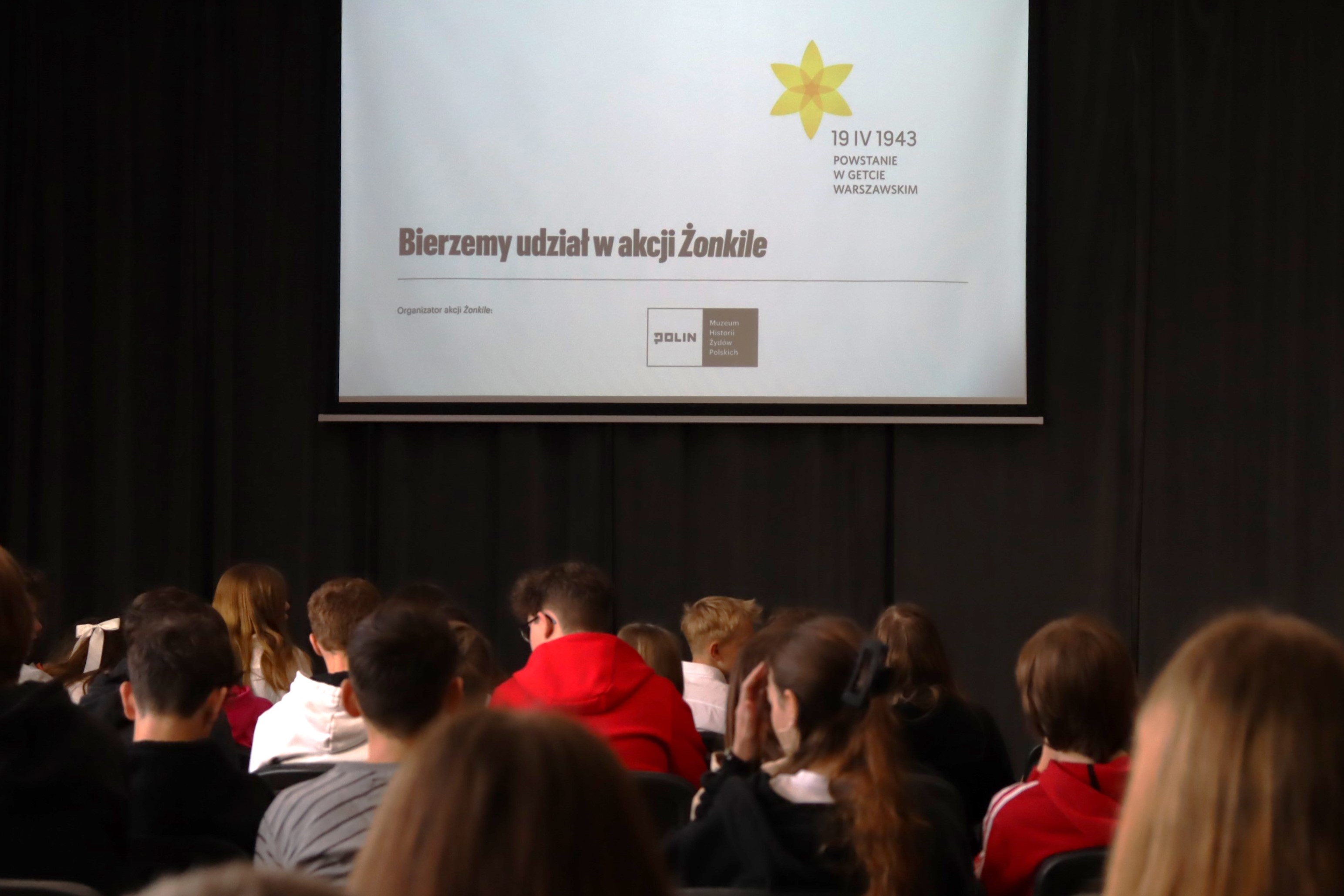 19 kwietnia mija 81 lat od wybuchu powstania w getcie warszawskim. To w niedzielę wielkanocną 1943 roku powstańcy wykazali się niezwykłym męstwem i odwagą, stawiając czoła nazistom. Dziś, aby upamiętnić te wydarzenia, uczniowie klas 7, 8 SP i 1 LO wzięli udział w akcji Żonkile organizowanej przez Muzeum Historii Żydów Polskich POLIN i obejrzeli film animowany, który swoim tytułem nawiązuje do reportażu Hanny Krall "Zdążyć przed Panem Bogiem".