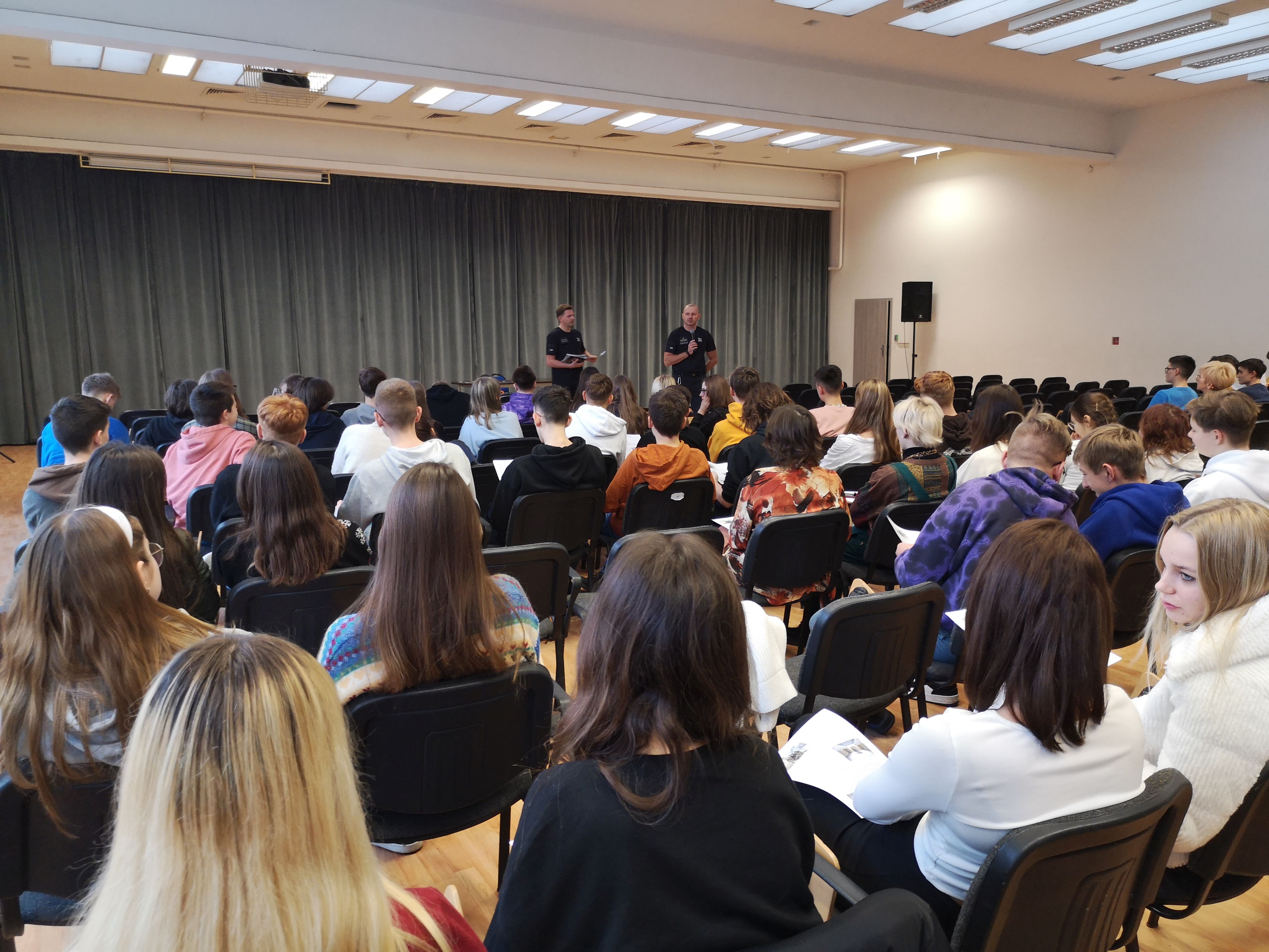 Uczniowie naszej szkoły spotkali się dzisiaj z pracownikami Zakładu Karnego w Gębarzewie. Podczas spotkania dowiedzieli się, w jaki sposób funkcjonują Zakłady Karne oraz Areszty Śledcze, a głównym przesłaniem była przestroga, aby unikać konfliktu z prawem. Nie zabrakło informacji dotyczących czynów karalnych, rodzaju więźniów oraz odsiadywanych przez nich wyroków. Ponadto, nasi uczniowie dowiedzieli się, jak wygląda rutyna dnia osadzonego w zakładzie karnym.