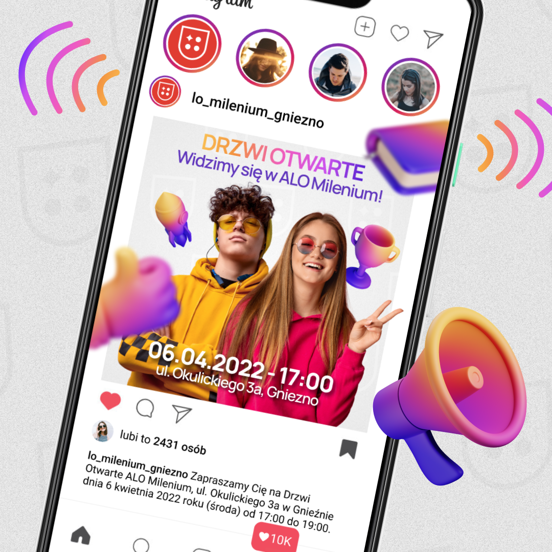 Akademickie Liceum Ogólnokształcące Milenium zaprasza na Drzwi Otwarte 2022! Widzimy się 6 kwietnia 2022 (środa) o godzinie 17:00 w naszej szkole na ul. Okulickiego 3a w Gnieźnie (naprzeciw stadionu żużlowego).