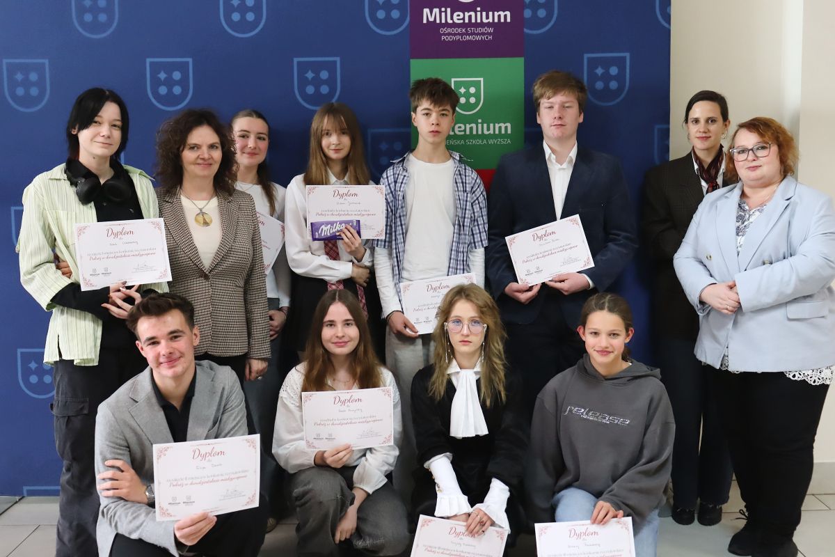 Uczniowie Akademickiego Liceum Ogólnokształcącego Milenium uczestniczyli w mistrzostwach powiatu w szachach. Naszą szkołę reprezentowali: Karol z 4 klasy, Lena, Leonard i Maksymilian z 3 klasy. Dzięki bardzo dobrej postawie udało się nam zdobyć trzecie miejsce.