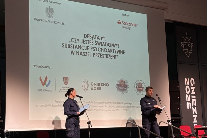 Klasa 1b uczestniczy dziś w wydarzeniu organizowanym przez Miasto Gniezno, Departament Zdrowia Urzędu Marszałkowskiego i Komendę Powiatową Policji w Gnieźnie zatytułowanym "Czy jesteś świadomy? Substancje psychoaktywne w naszej przestrzeni".