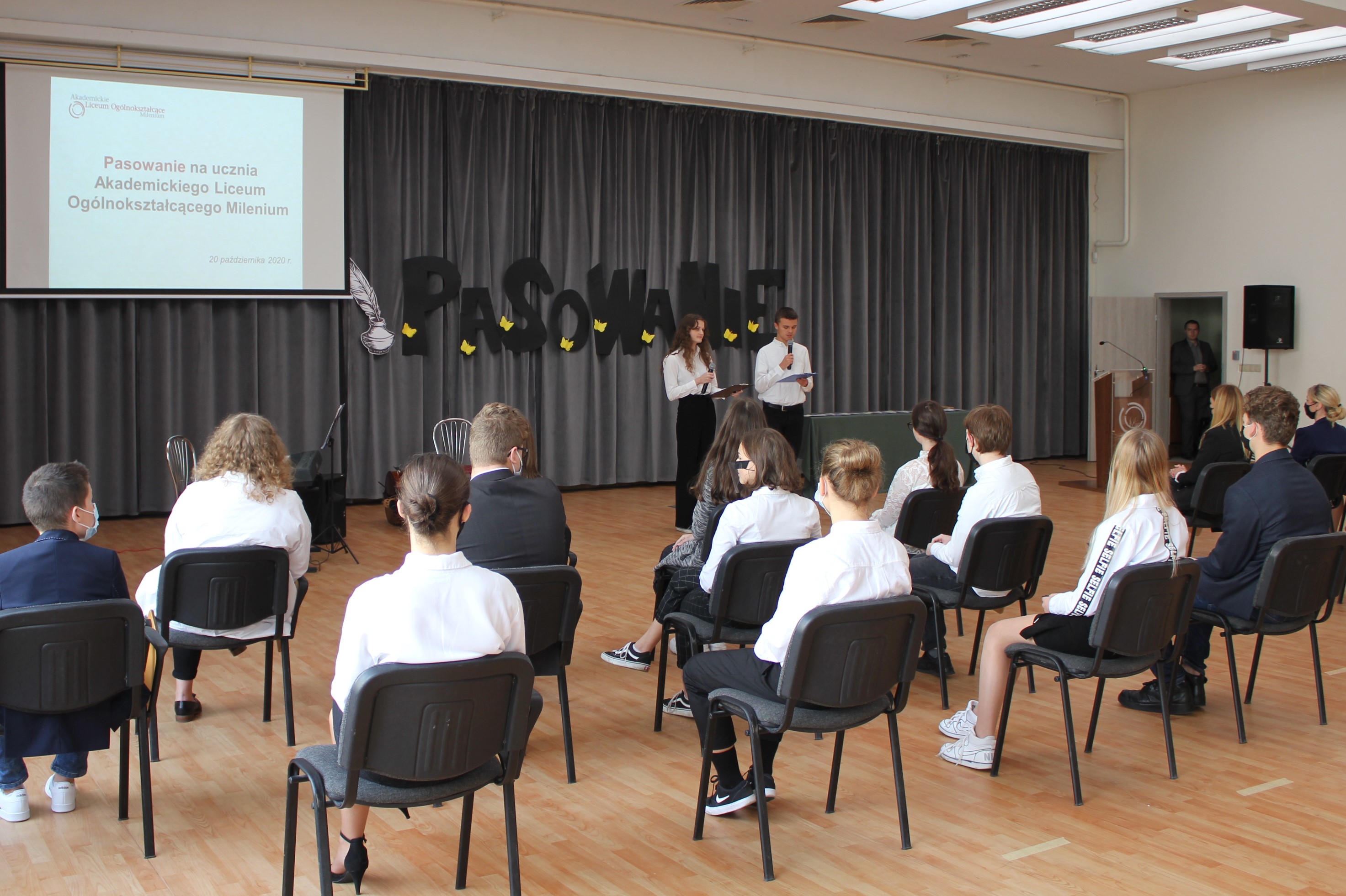 Dnia 20 października 2020 roku uczniowie klas pierwszych, jak co roku, wzięli udział w uroczystym pasowaniu na ucznia Akademickiego Liceum Ogólnokształcącego Milenium.
