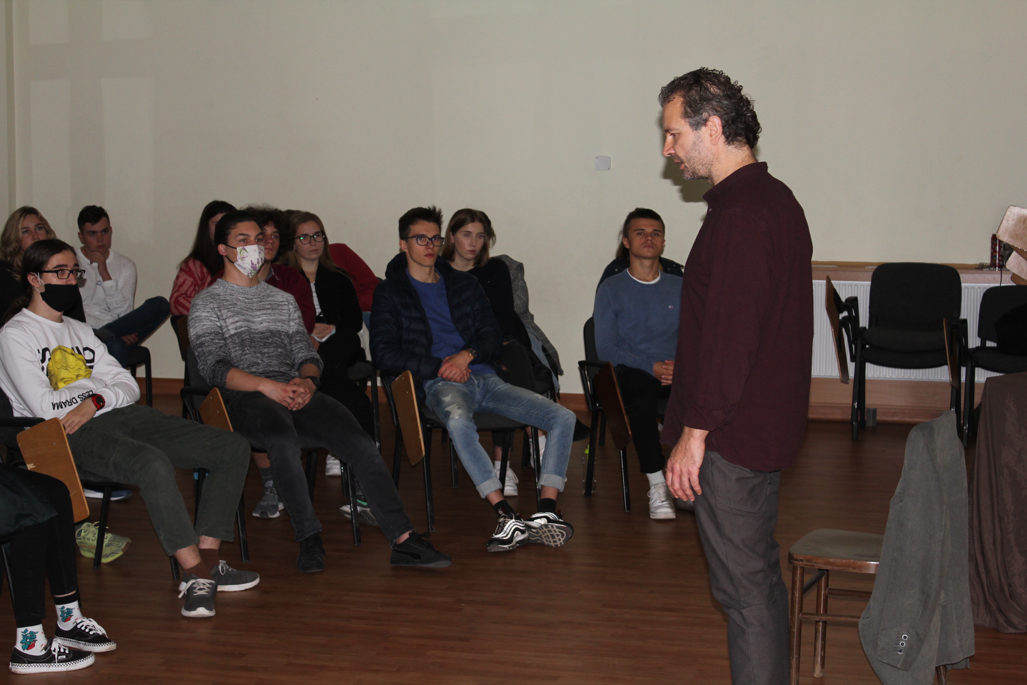 W czwartek nasi licealiści wybrali się w niezwykle intymną podróż po świecie Witolda Gombrowicza. Zabrał nas w nią p. Tomasz Kujawski, który wystawił wyreżyserowany przez siebie monodram na podstawie „Dzienników” awangardowego pisarza.