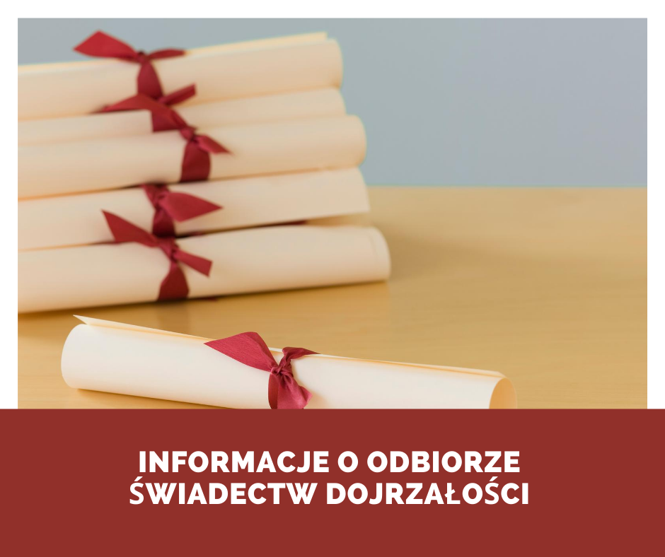 Informujemy, że odbiór świadectw dojrzałości jest możliwy od dnia 12 sierpnia br. w godzinach pracy sekretariatu (7.30 do 14.00).